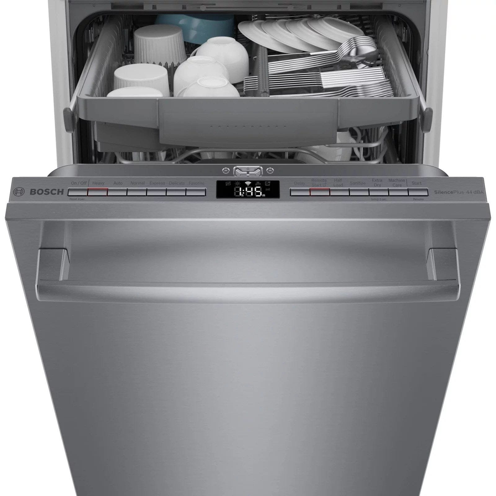 This 18 in. ADA-compliant dishwasher is uniquely designed for customers with special height requirements. It features sophisticated technologies for quiet operation, outstanding performance and remarkable flexibility. It also contains a built-in water softener to ensure optimally spot-free and shiny dishes.