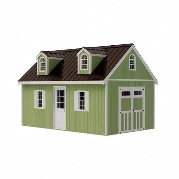 The Hampton features a great amount of storage for all your lawn and garden items. Featuring a large loft area and attractive dormers which allow light and ventilation. Included are stylish carriage style double doors, 1 (one) 32 in. x 80 in. 9 lite walk-in door, 2 (two) 18 in. x 36 in. windows with vinyl shutters, 1 (one) gable window with sunburst and 2 (two) dormers with windows. During construction you may choose to install windows and doors as shown or move to locations of your choosing. High side walls allow you to add shelving or workbench. Wood floor included. Before purchasing check with your local permit authority. Shingles purchased by homeowner. Building is shipped directly to you via curbside delivery.
