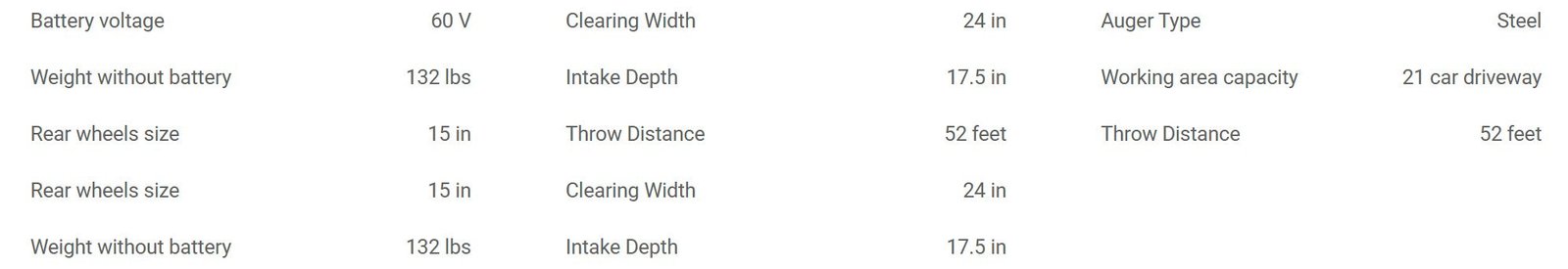 Powered by four 60V 5.0Ah lithium-ion batteries, it offers long-lasting performance and extended runtime. The high-torque brushless motor drives a durable 24-inch steel auger and impeller system, easily tackling snow up to 21 inches deep. The dual-stage design breaks up packed snow and throws it far from your clearing path.