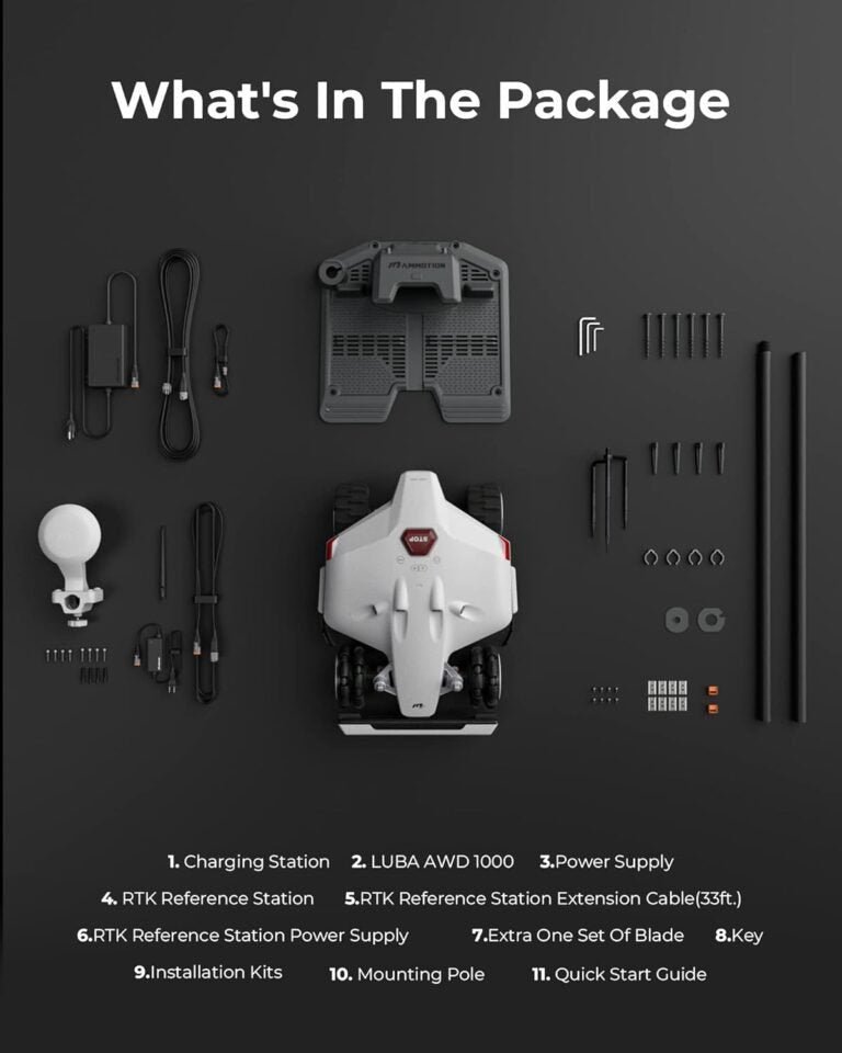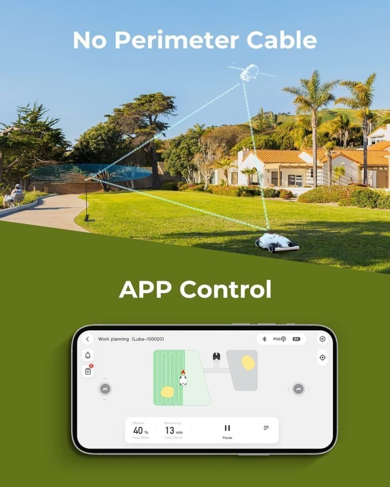 - QUICK SETUP WITH NO PERIMETER WIRES: No perimeter wire is needed to setup or repair anymore. With the App, you can set the virtual boundaries in cm-level accuracy positioning and map your lawn thanks to the advanced RTK-GNSS and Multi-Sensor Navigation System. LUBA leads the RTK signal range of covering a radius of 394ft (120m).
