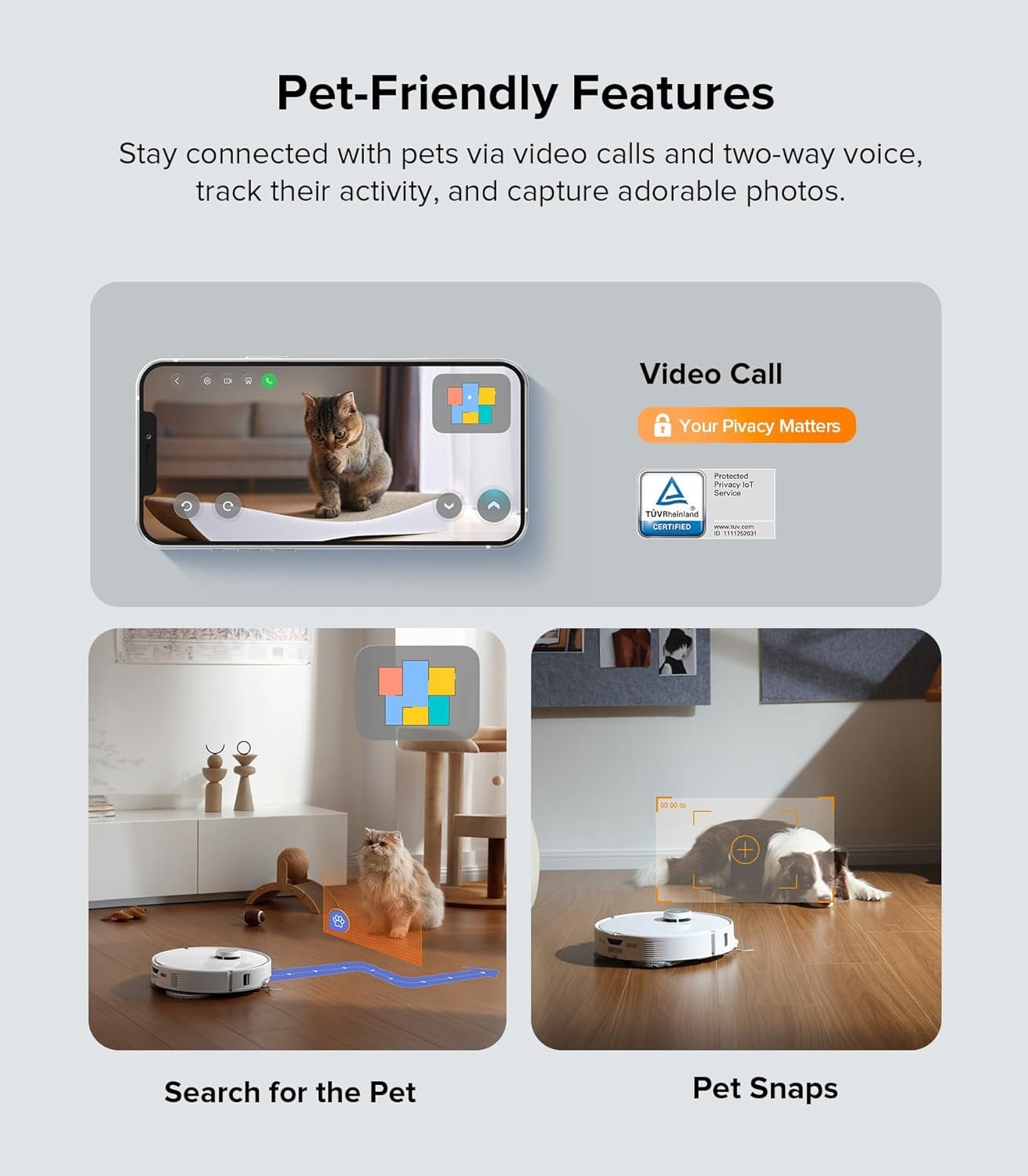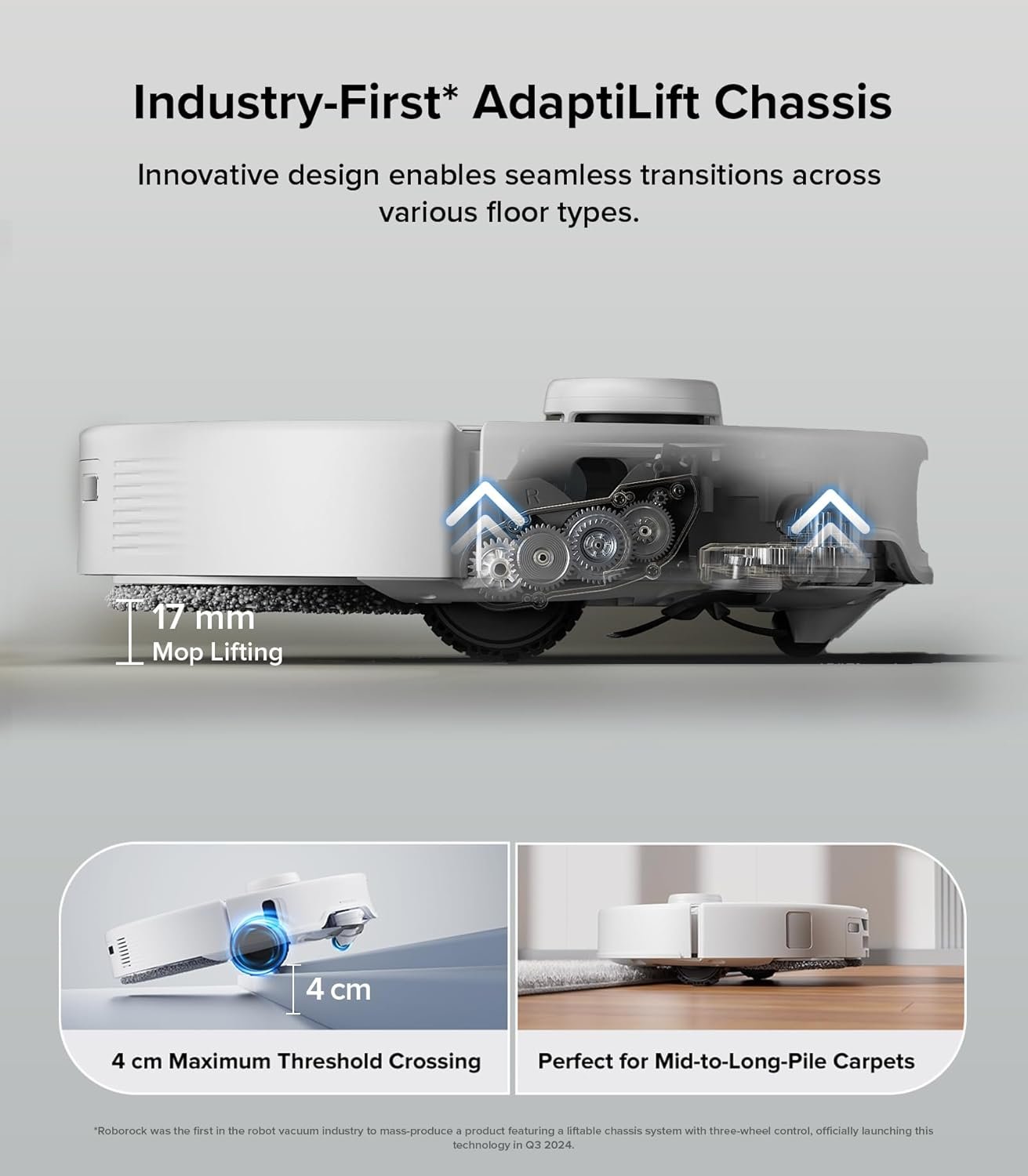 • Excellent Strategies for Carpet Cleaning: Mop and Vacuum in one clean with up to 10mm Auto Mop Lifting. Dual mops can lift automatically when detecting carpets to ensure smooth cleaning.